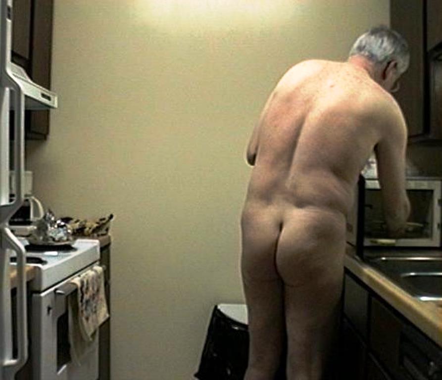 Tanned chubby Daddy goes nude around the house and outdoors,