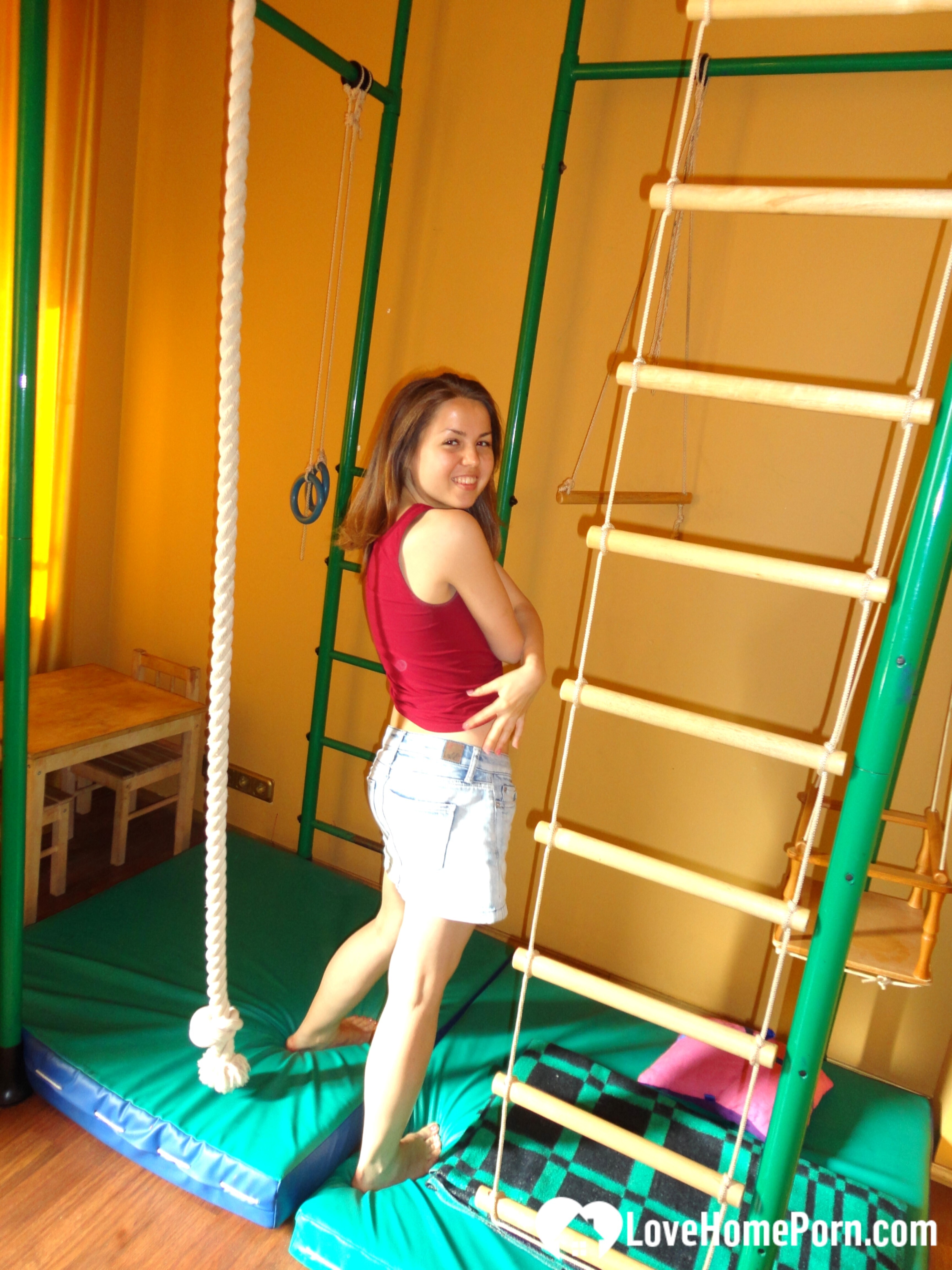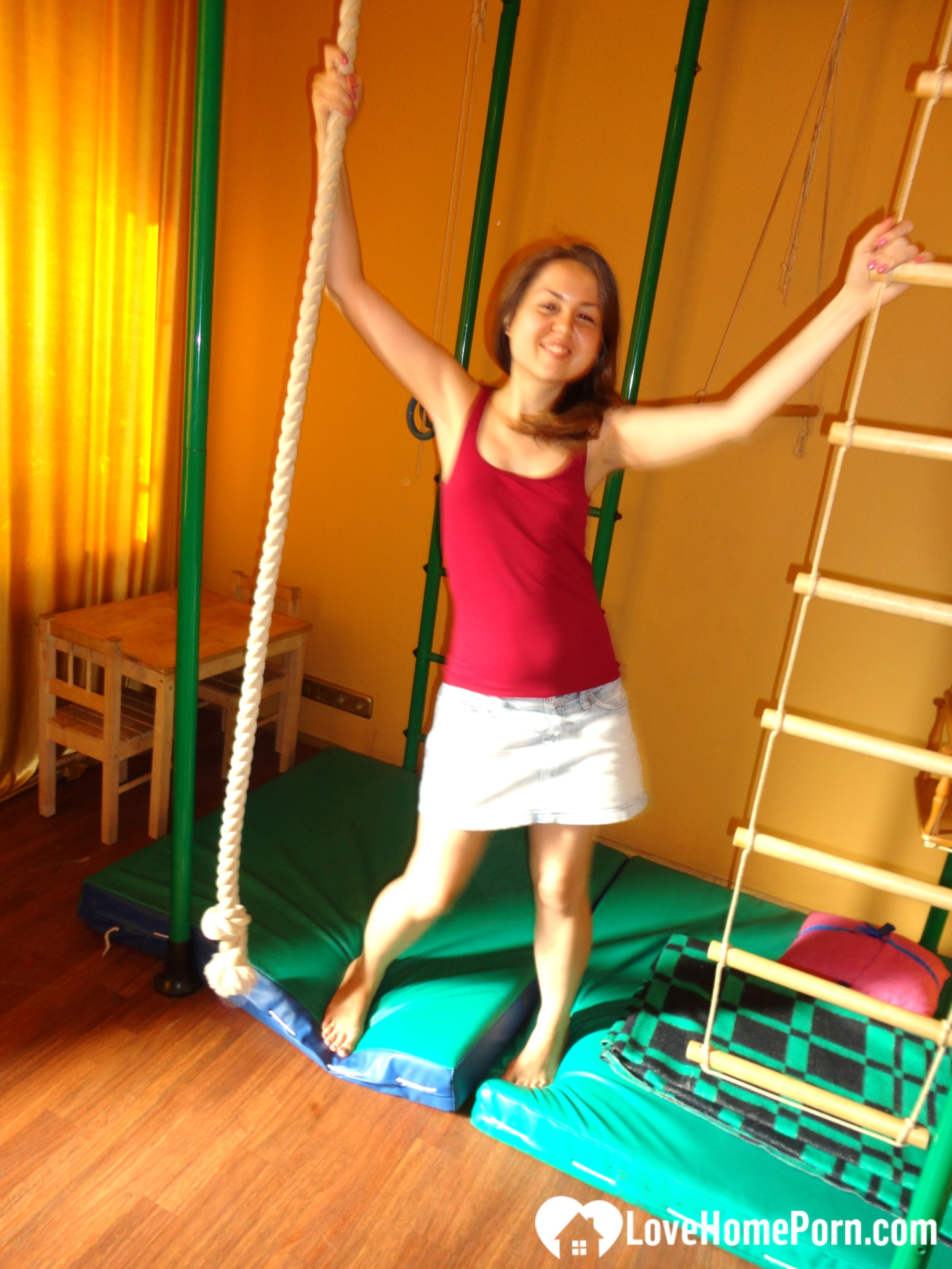 I built an acrobatic station in my house so I celebrated with some nude teasing.