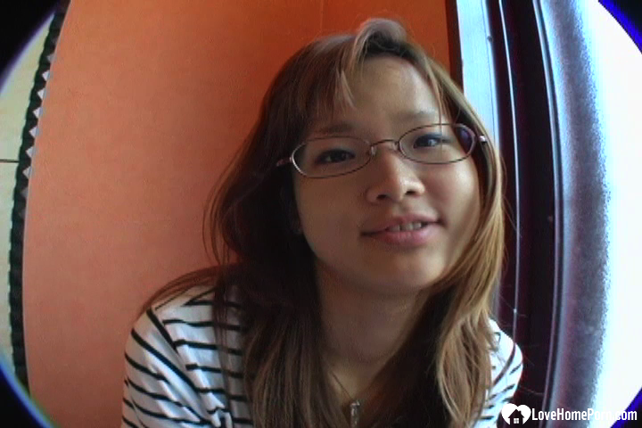 Nerdy Asian from the store knows cock-riding