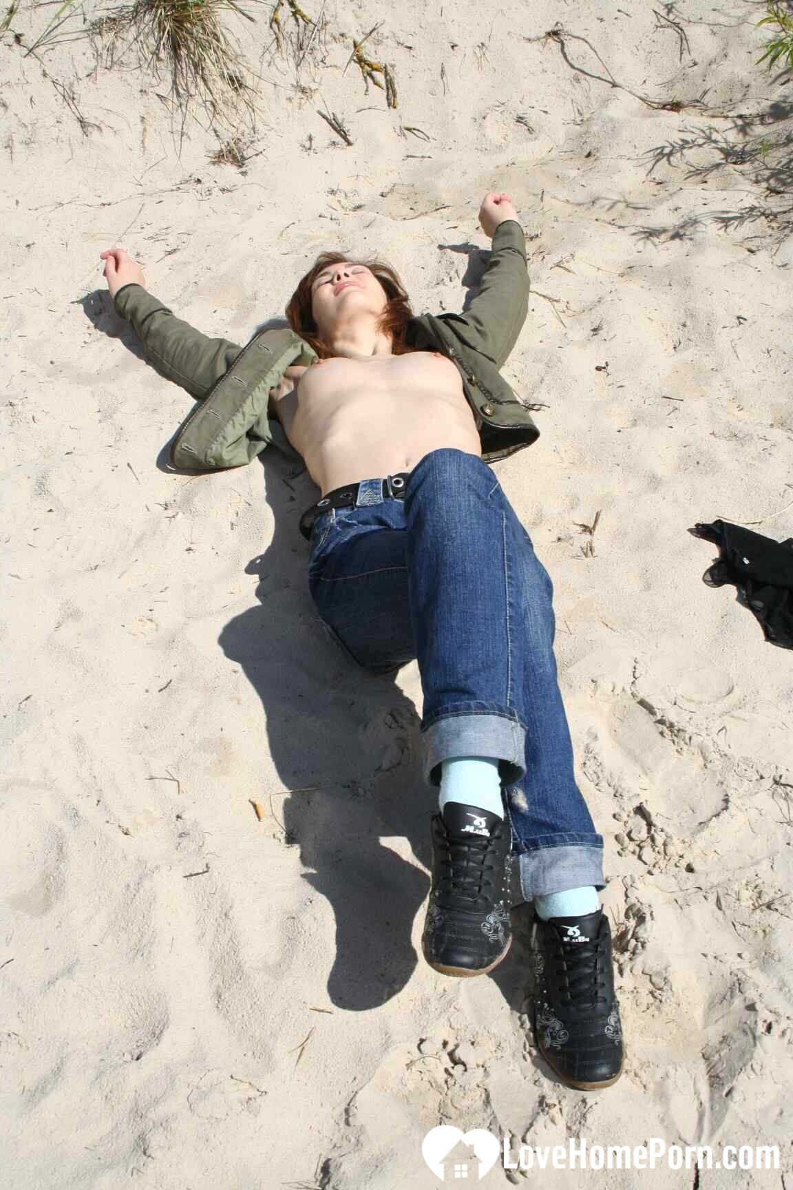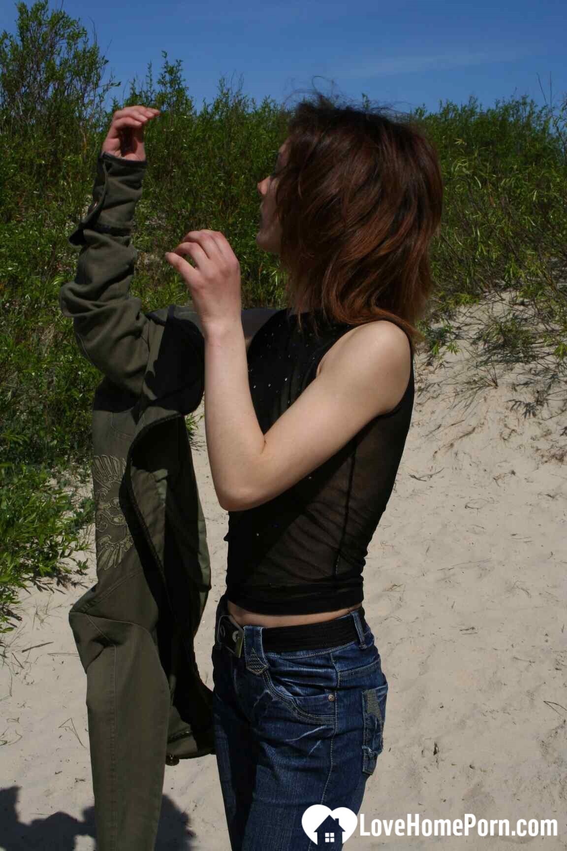 During my hiking, I bumped into this stunning redhead with a seethrough top.