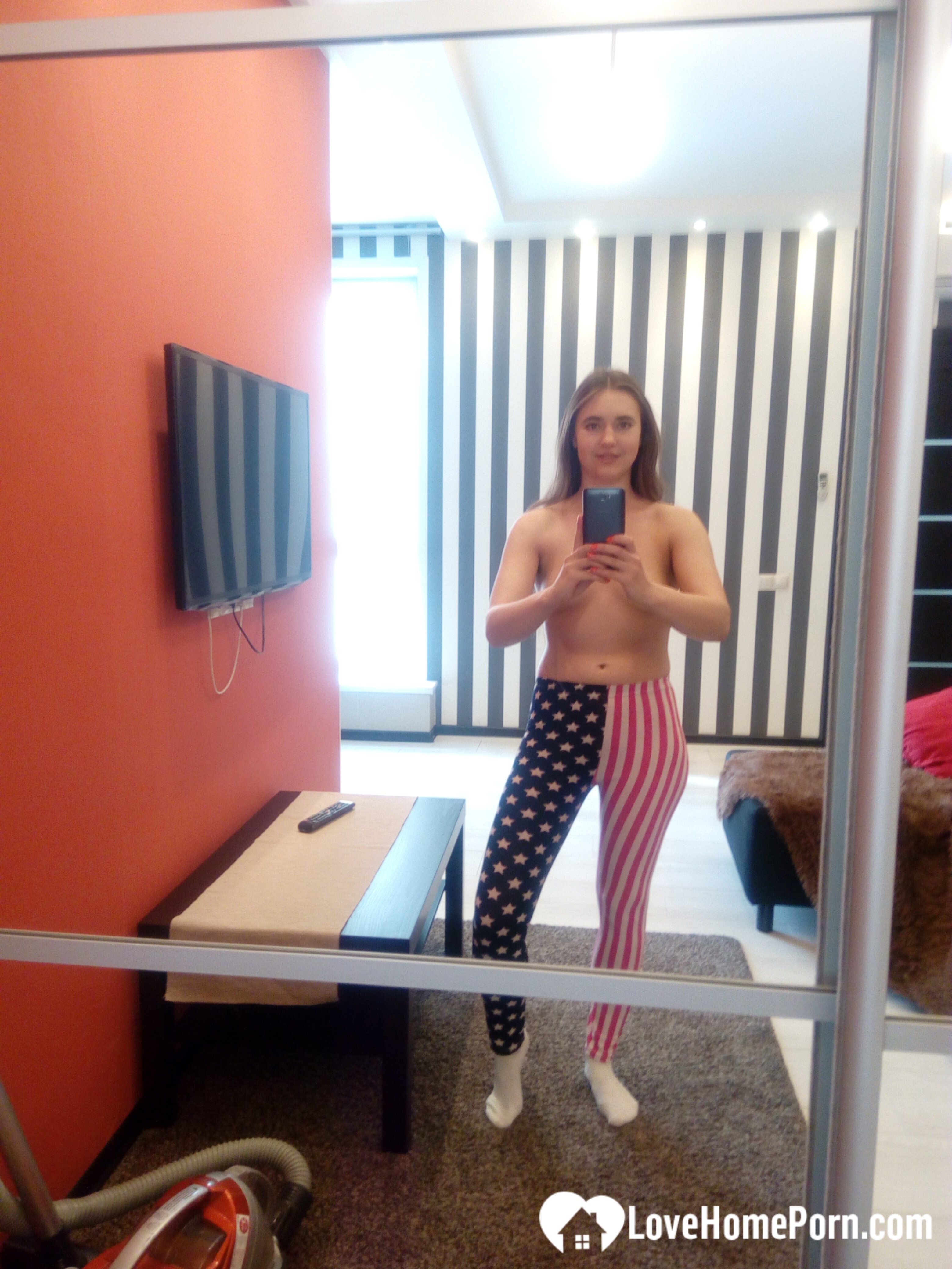 Amazing American hottie loves teasing with her incredible ass while posing in the mirror.
