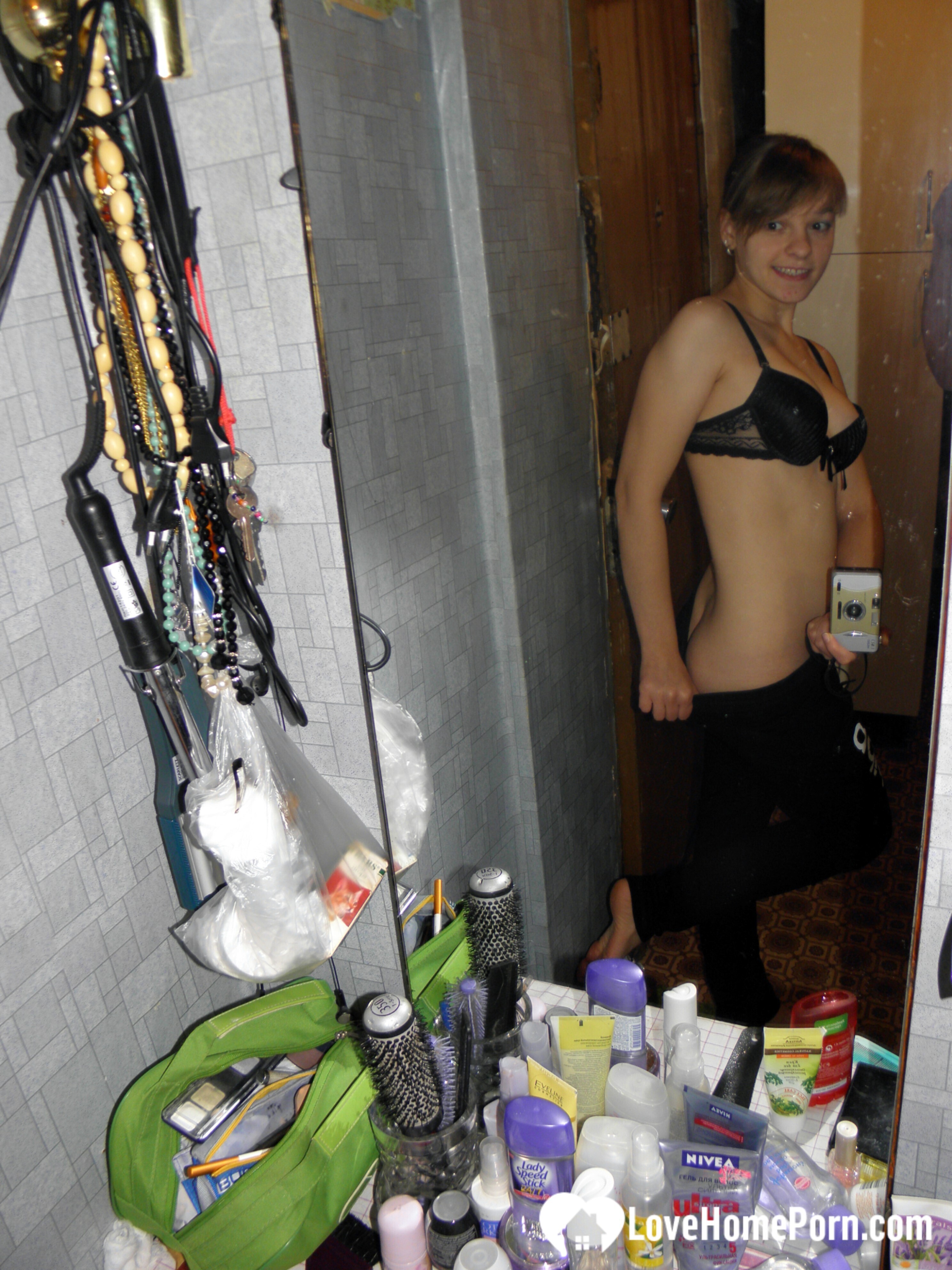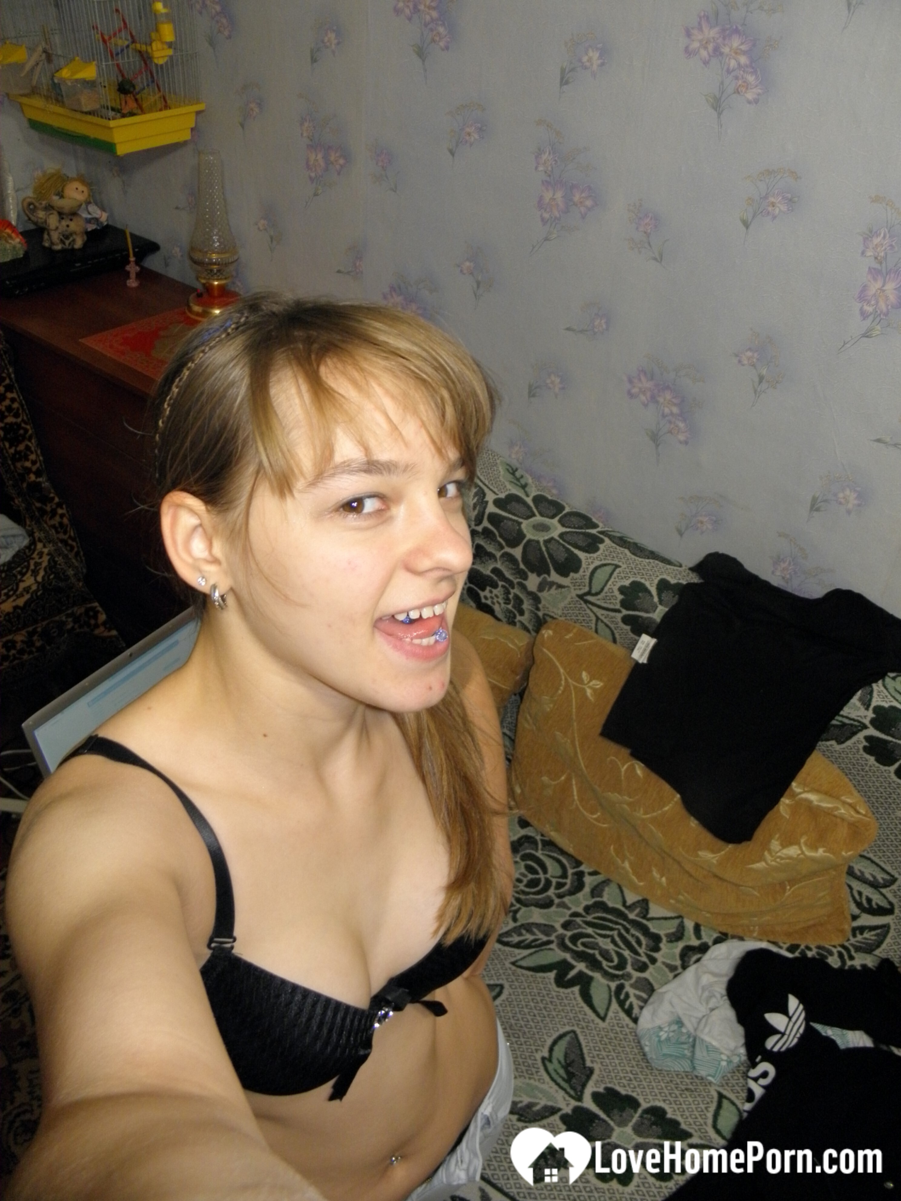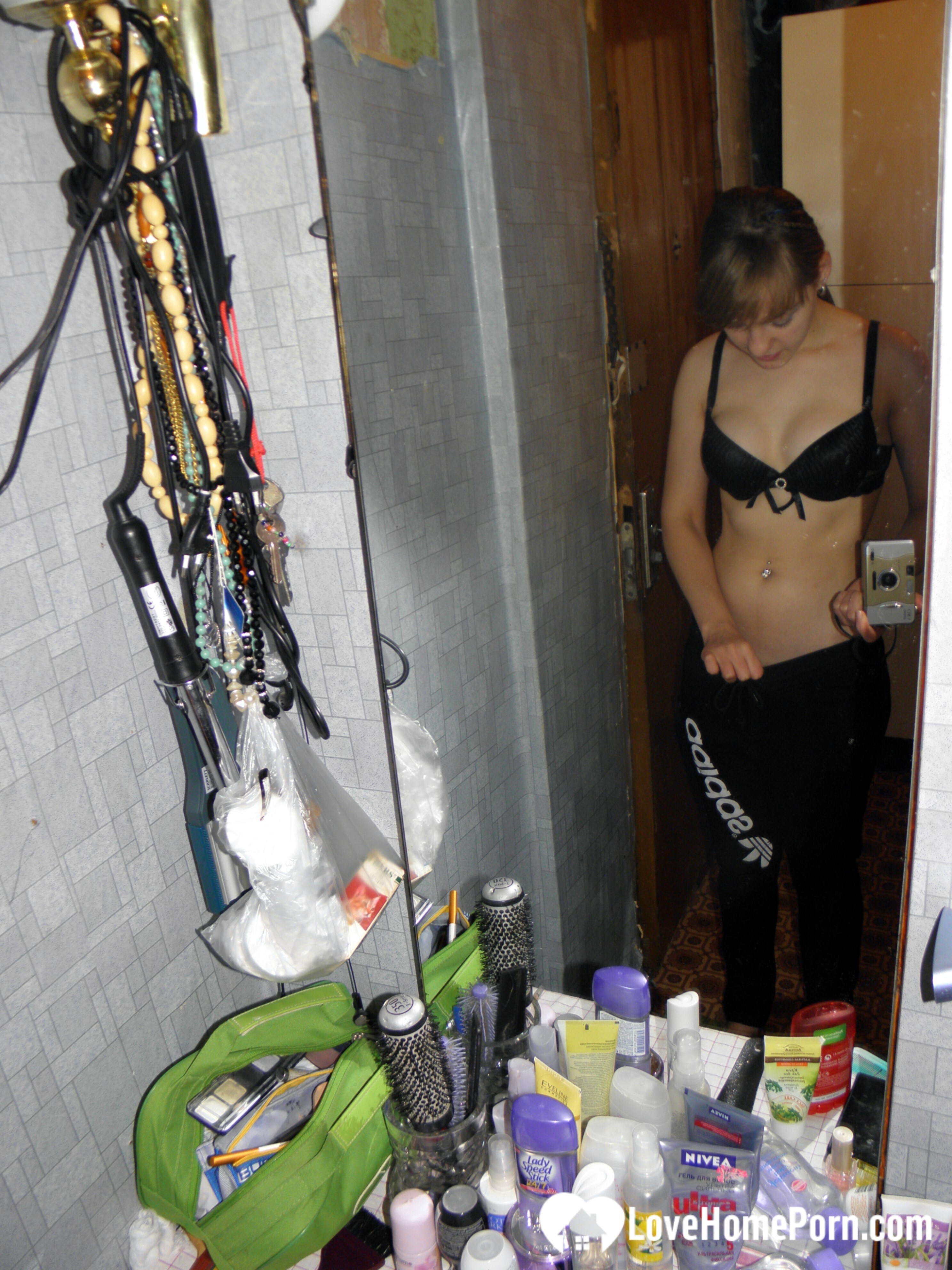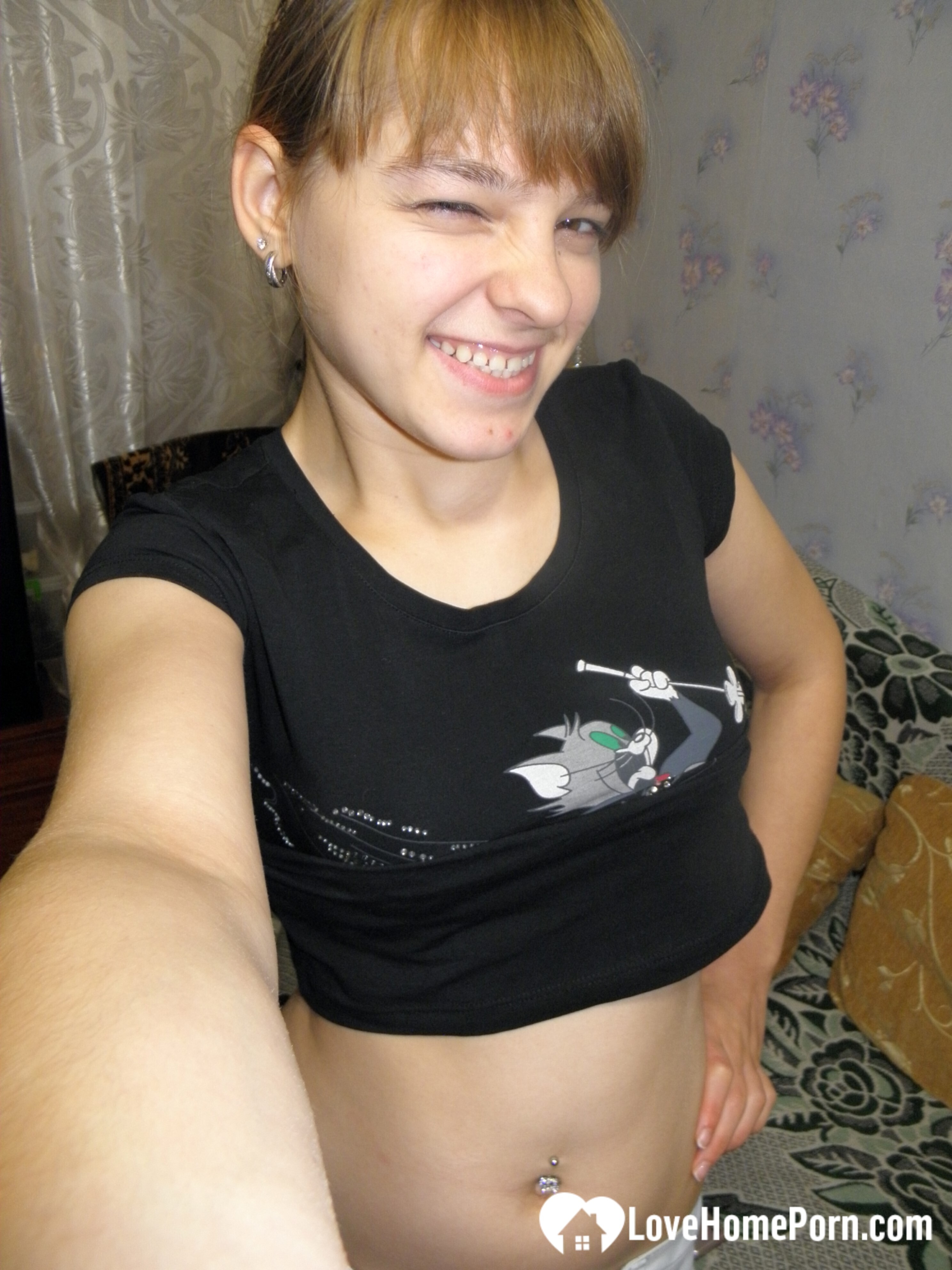 Tiny redhead teen Sophie La Sage strips and flaunts her sexy body