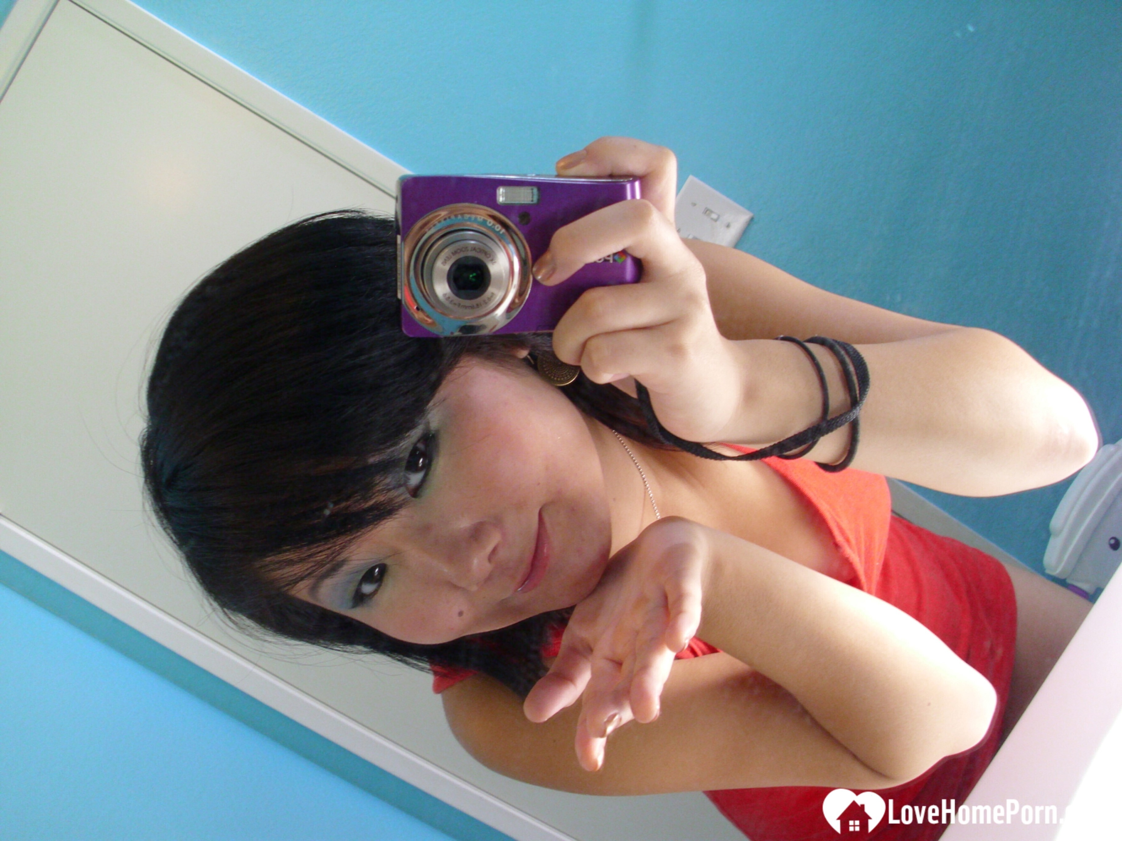 Big booty Asian teen finger fucked herself after posing on the motorbike