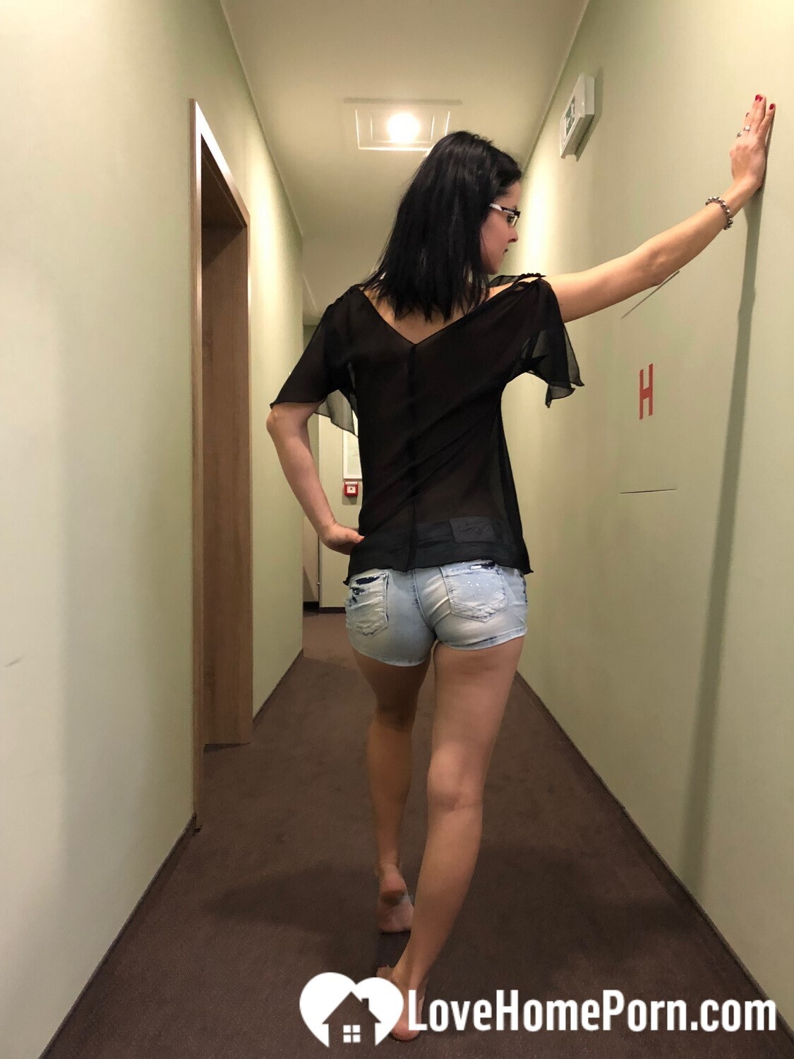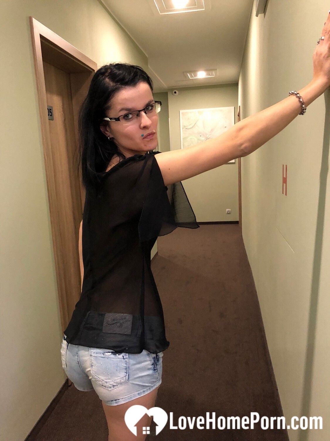 Some risky teasing in the hotel hallway