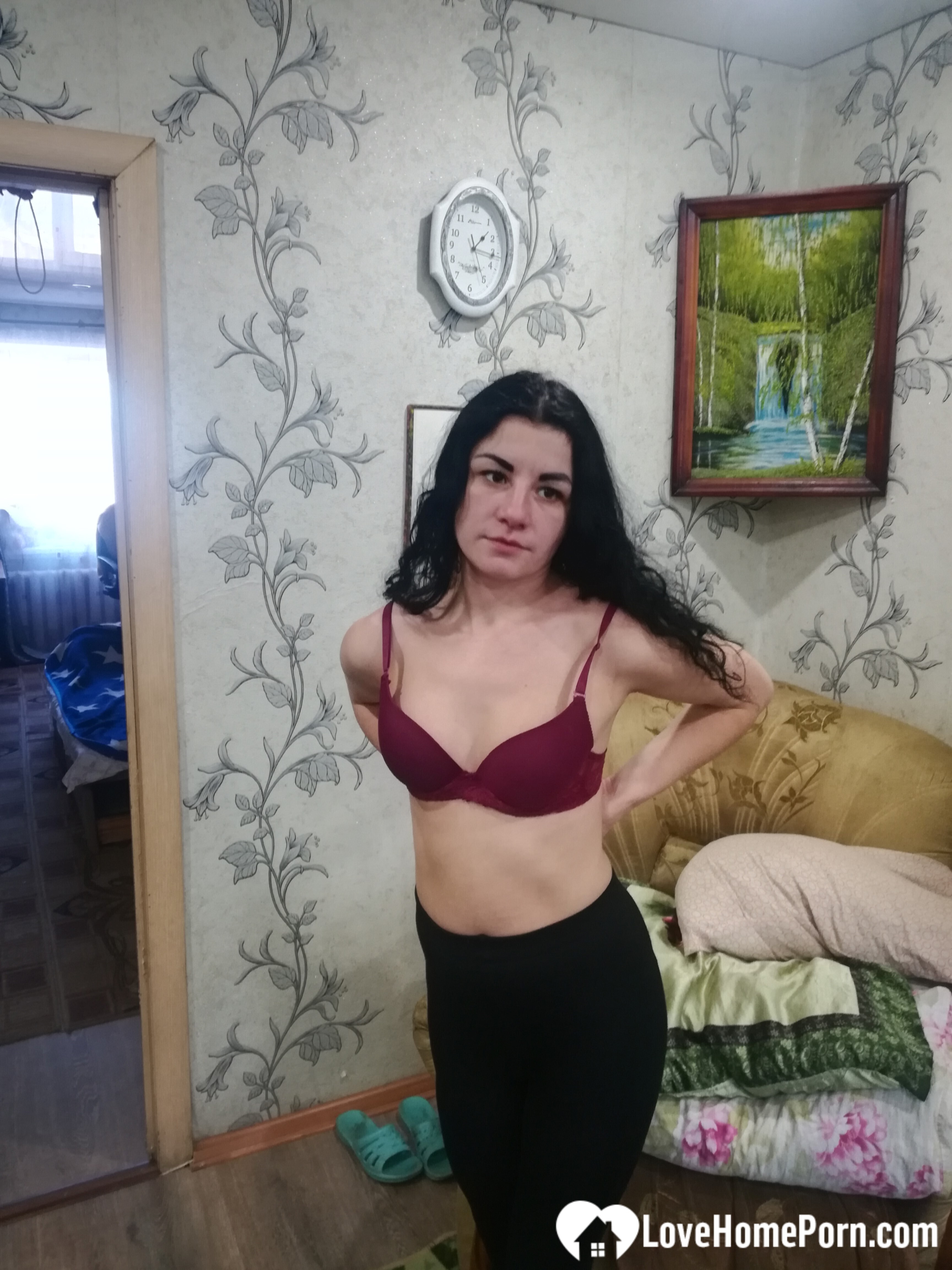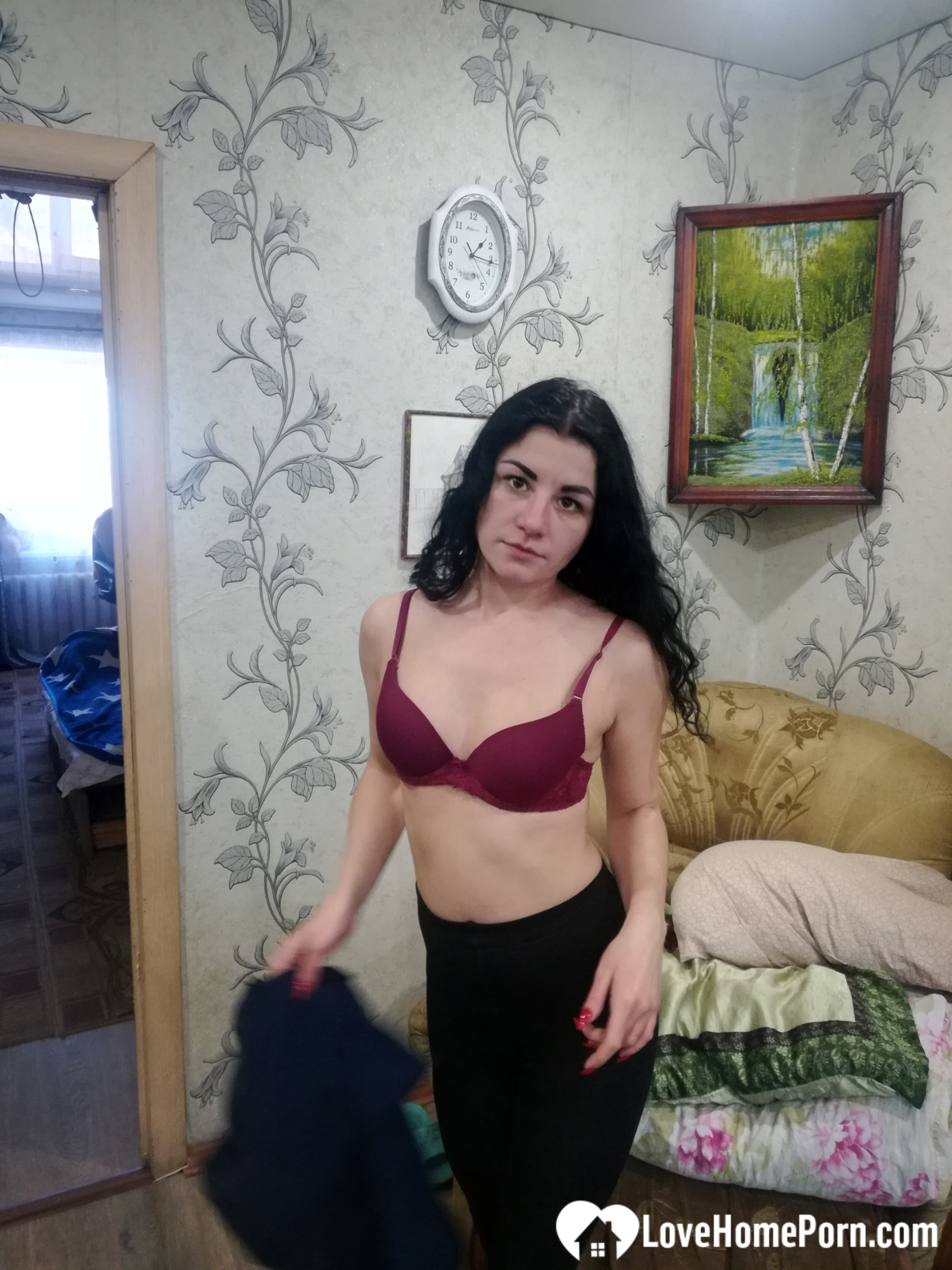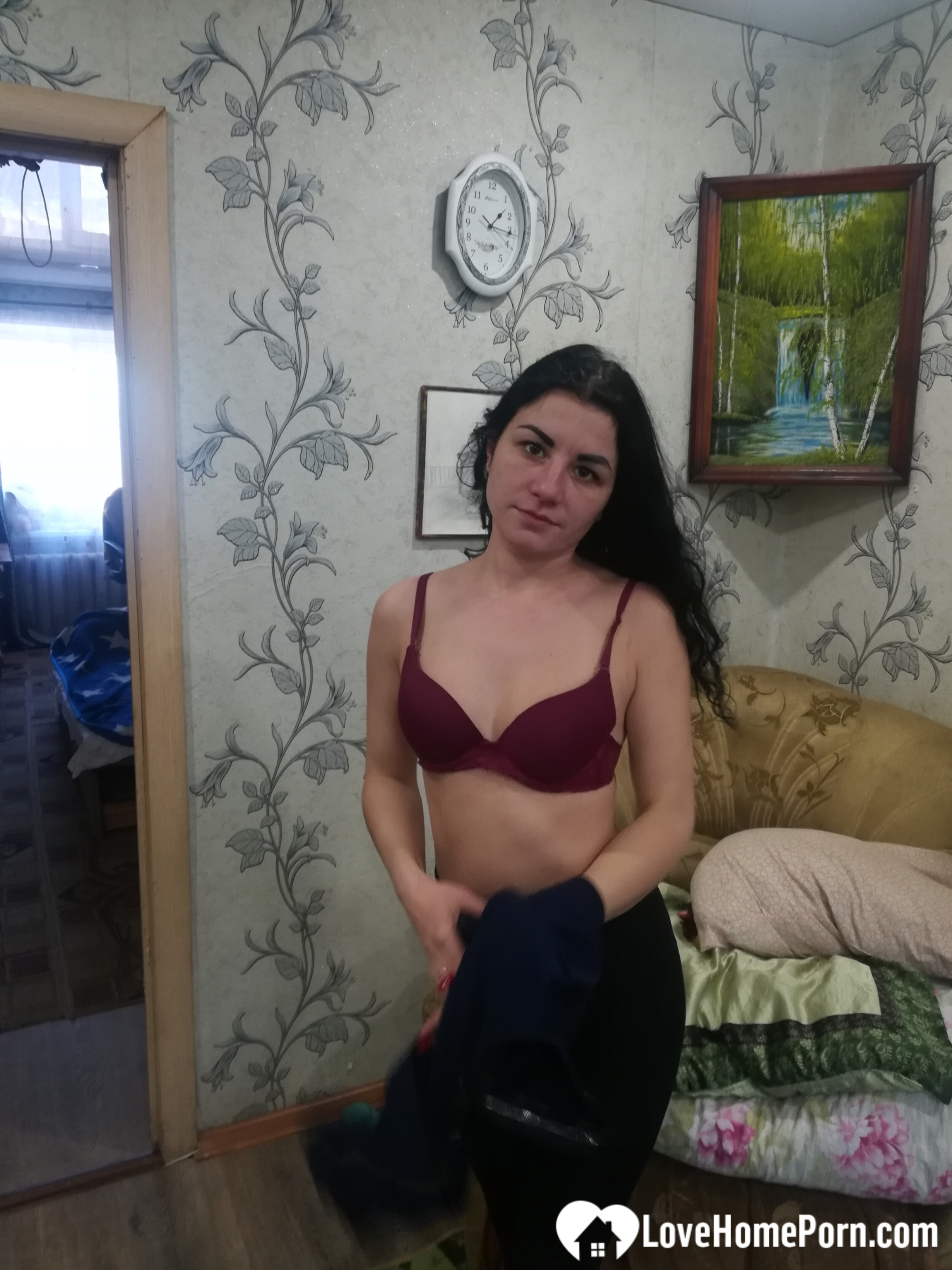 Sexy babe didn't hesitate to make her man happy with a quick striptease.