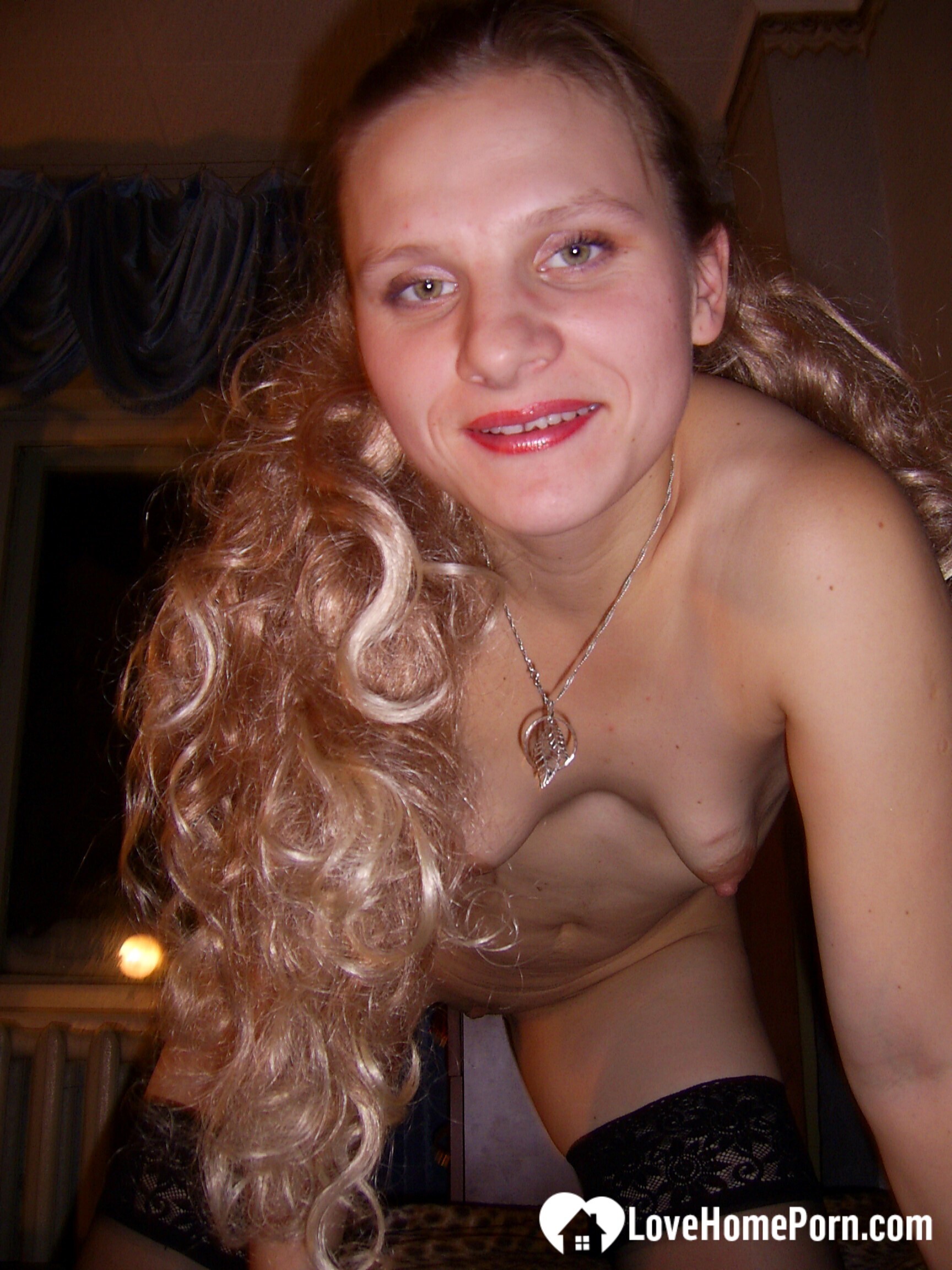 Hot Babe Anett Larman in sexy nylon stockings solo