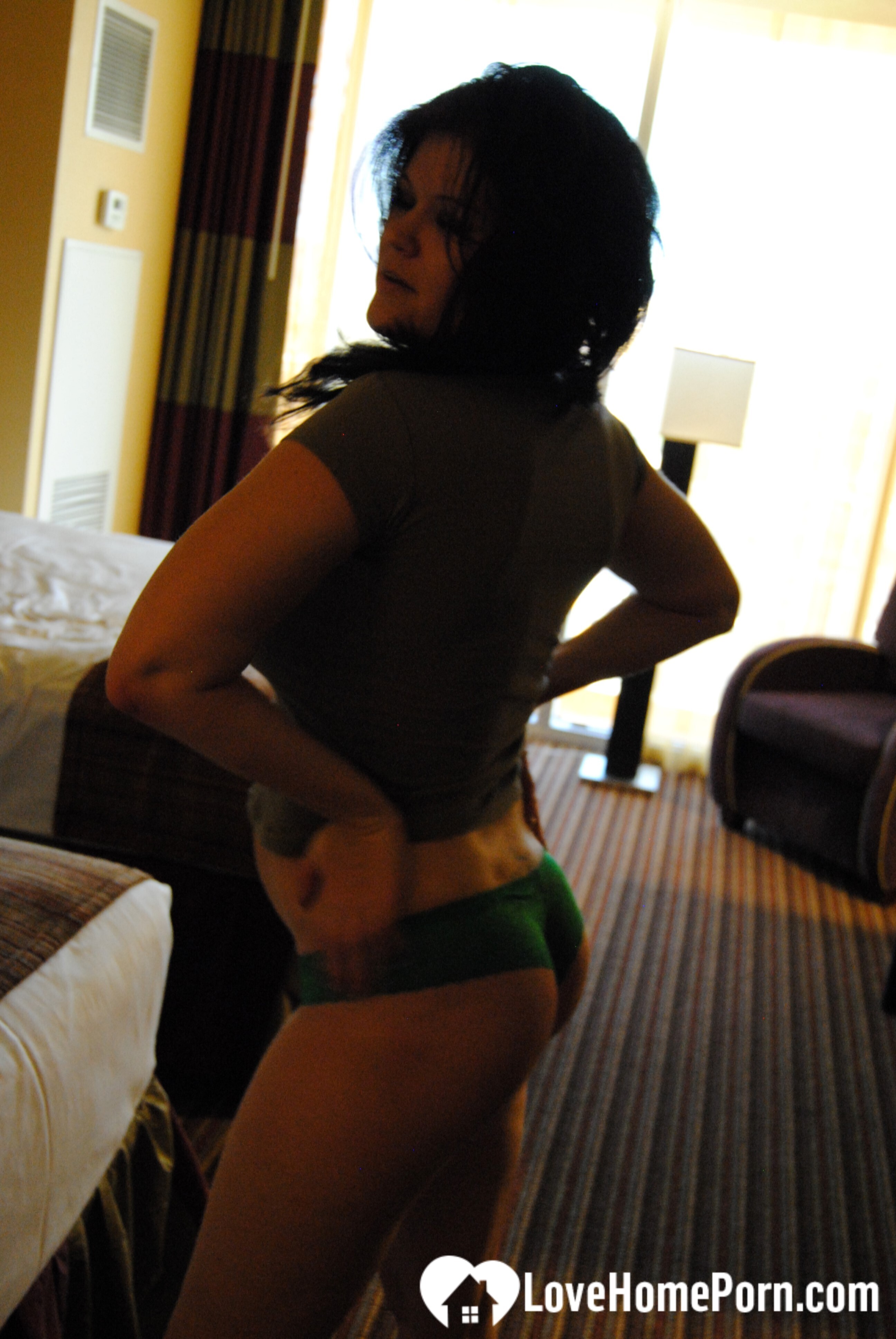 Her large tits shake as she fucks herself