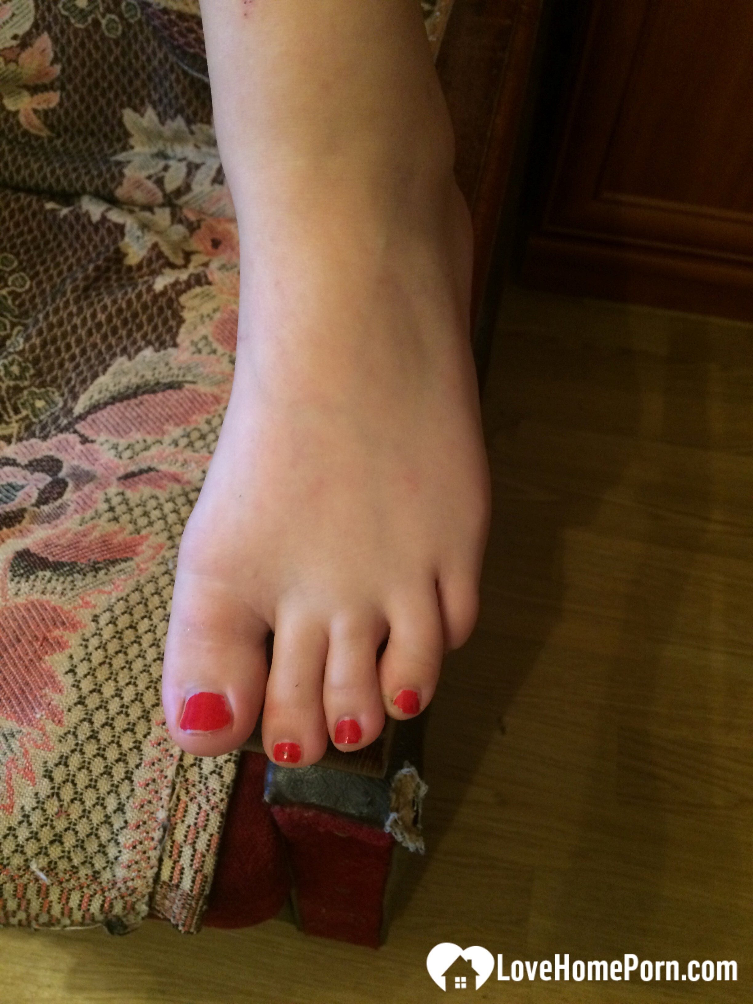 After she's done stretching her pussy, she will flaunt her pretty feet around.