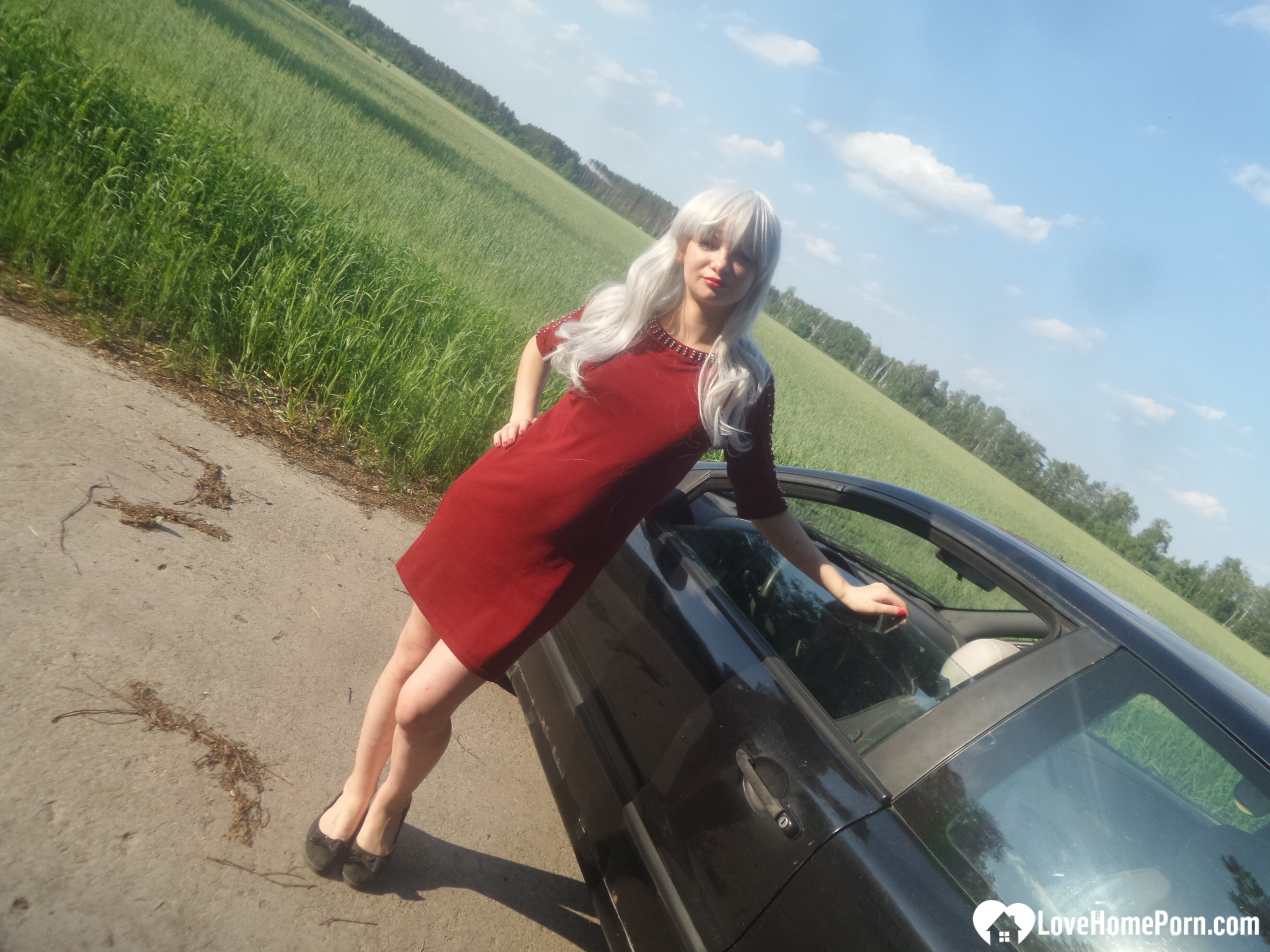 Beautiful Latin model shows hairy pussy and enjoyed outdoor posing action