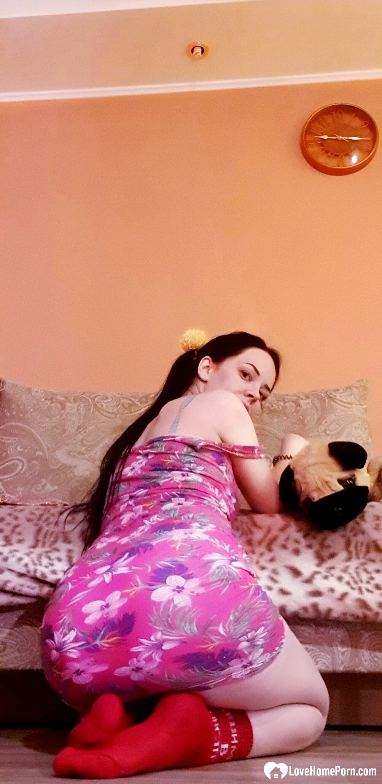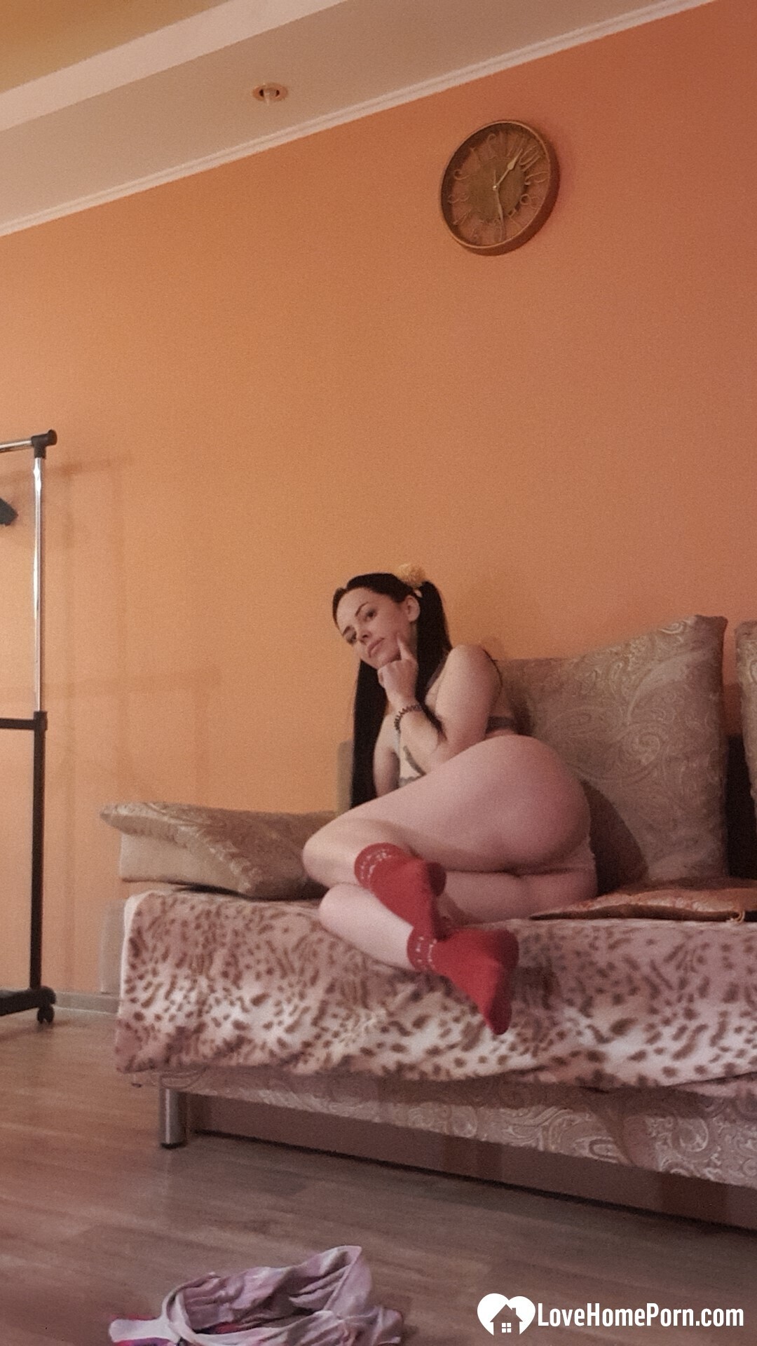 Sensational brunette loves posing in her socks