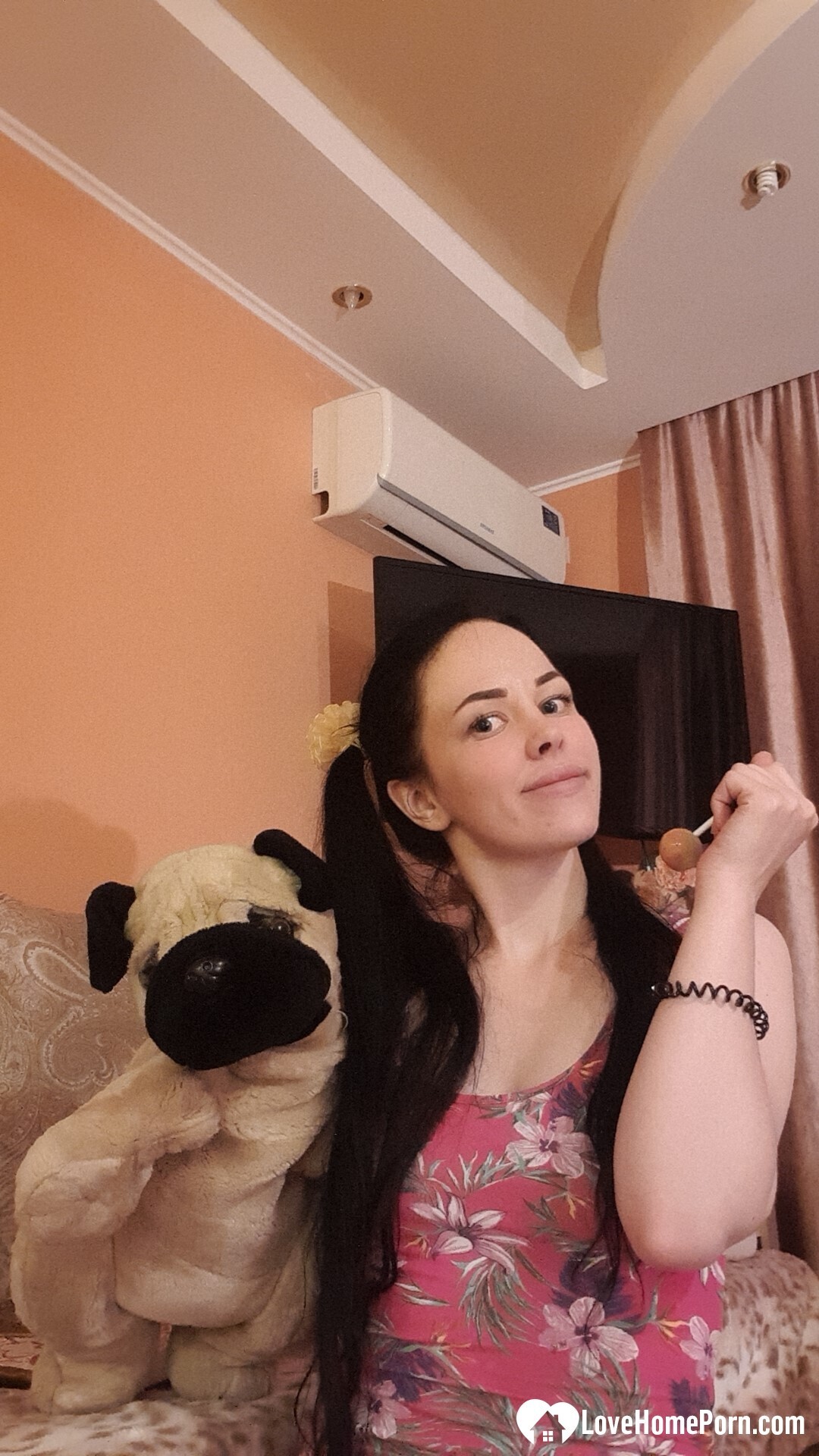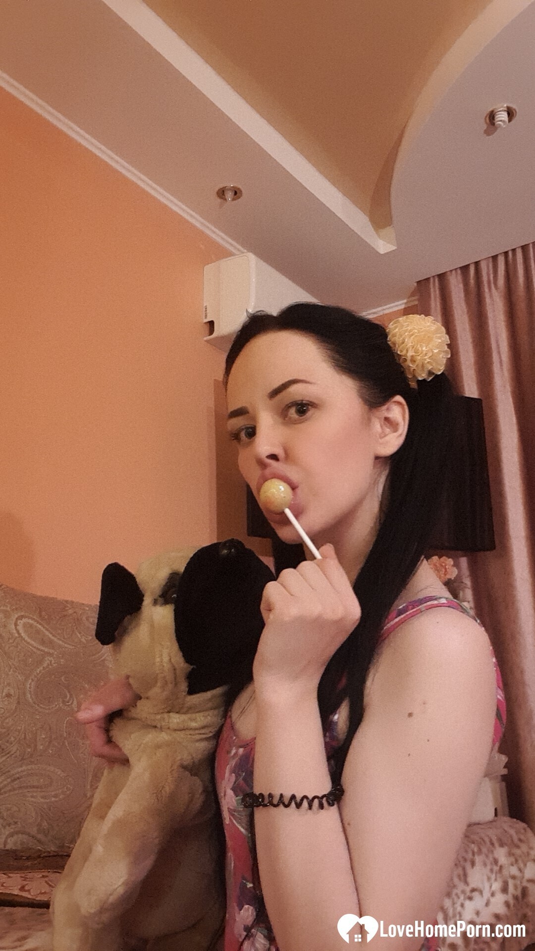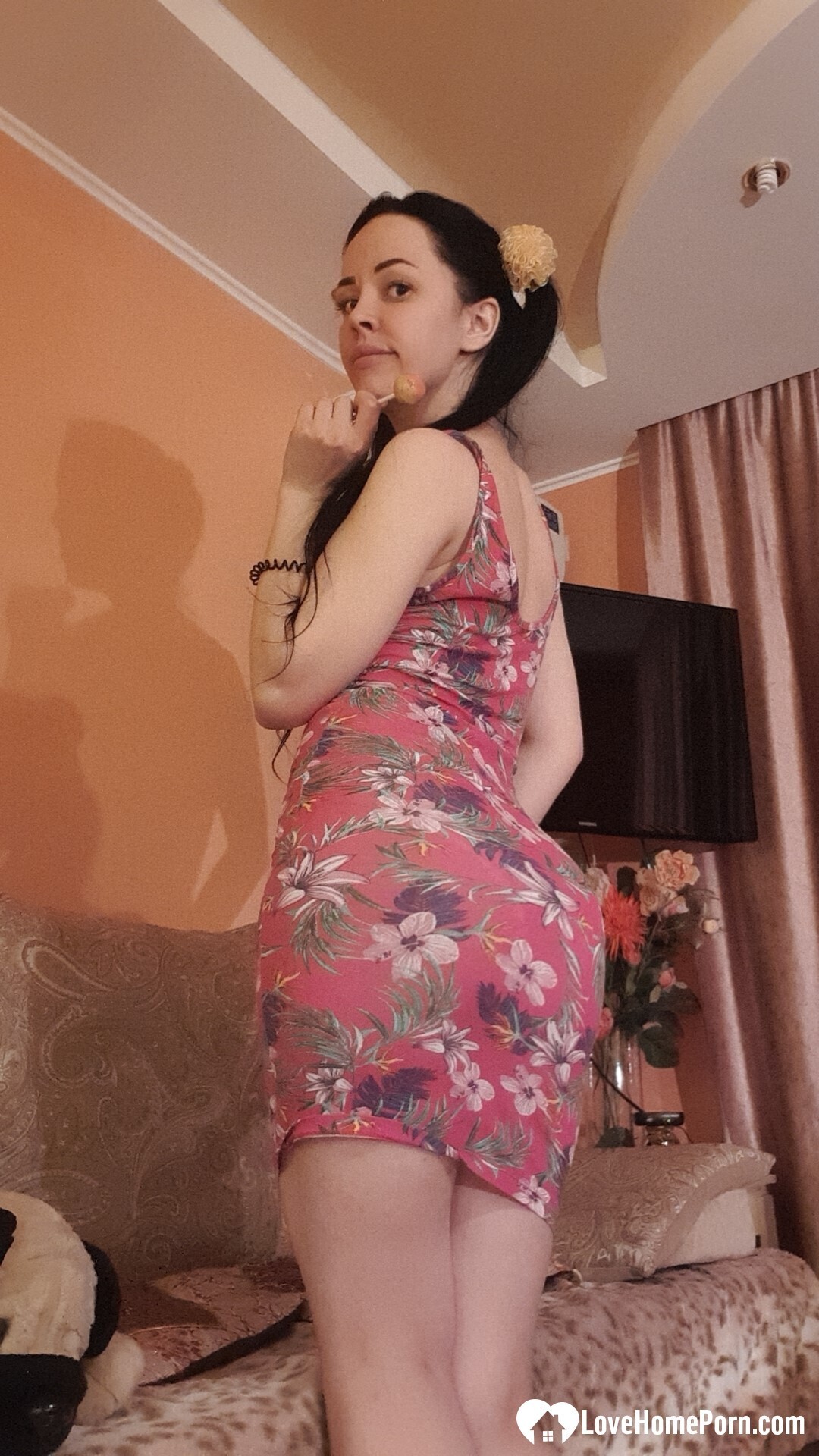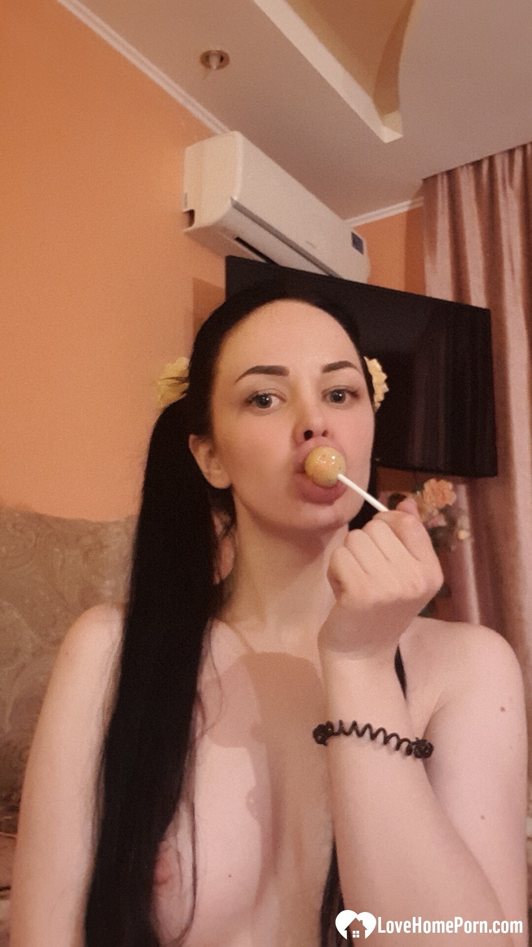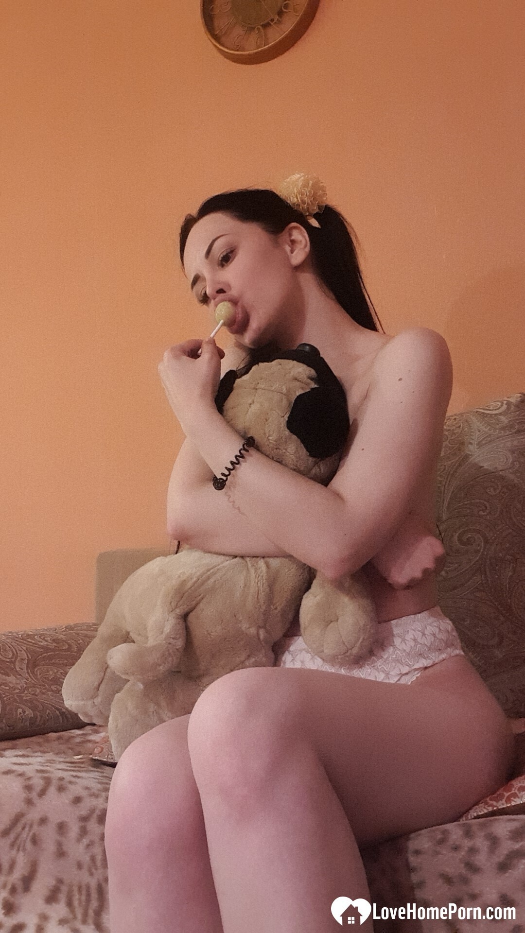 Sexy teen babe loves to tease with her goodies while sucking on a lollipop.