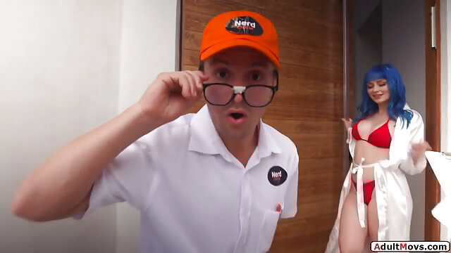 Nerd crew Cadence Lux and Jay Romero masturbating on hot busty client Jewelz Blu.She lets them suck boobs.The babes suck off his big cock.The blonde gets pussy licked by the hottie who gets banged in her snatch.She gets oral while the others fucked