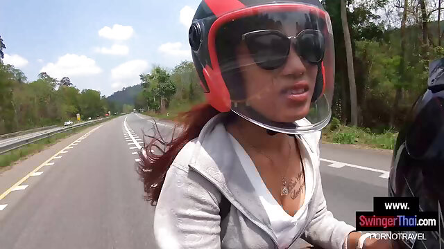 Coffee shop public blowjob and big cock ride for this Asian European amateur couple in Thailand after they got there on a motobike! They could not keep their hands off each other and they fuck everywhere they go!