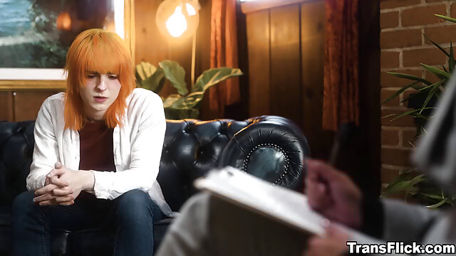 Doctor Casey Calvert, is with her next client, Jean Hollywood while they are talking Jean is struggling with their gender identity so Doctor Casey is always on her side to help. She kiss her client and both start to get horny. Jean licks her Doctor's pussy and after Casey blow her clients cock.