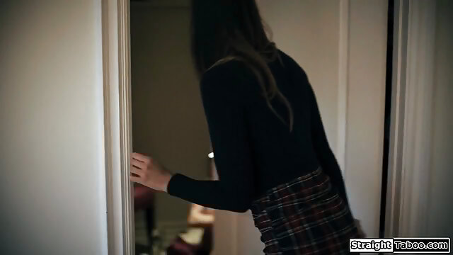 Brunette finds her stepsisters petite gf hiding in her house and makes her kiss her to keep quiet.The cheating girl licks her hairy pussy and the babe sucks her small tits.She has her first time giving oral sex and masturbates her cunt.Then they trib