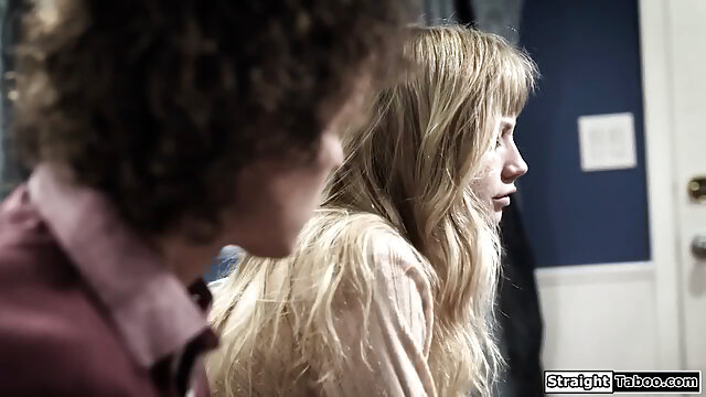 Petite blonde confesses her crush on her stepcousin and they kiss.The guy sucks her small tits and gives her oral sex.The babe gets deepthroat facefucked while he fingers her pussy and then the girl gets fucked as she takes his big dick from behind