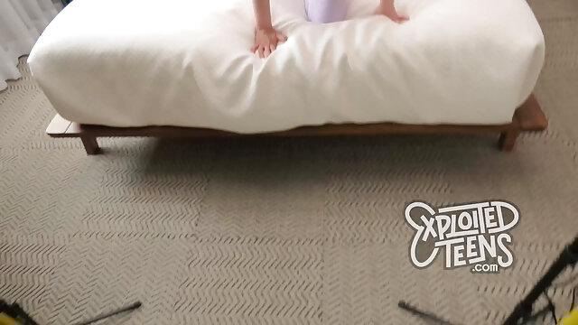 Wholesome brunette teen with DD tits licks ass and sucks cock