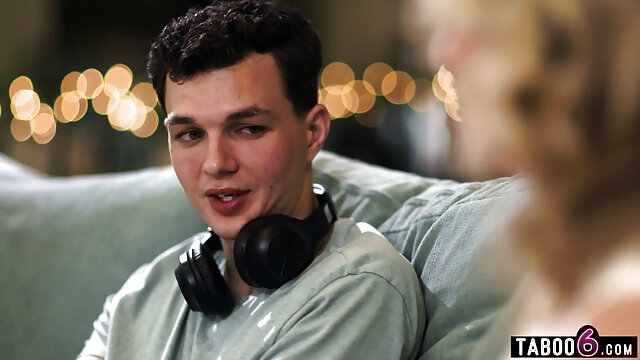 Stepmom MILF Rachael Cavalli catches her 19 years old stepson stroking his big cock with headphones on so he did not even hear her yell at him! She came closer and saw he was looking at porn again which got her curious about it too!
