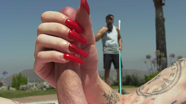 I tell you man, every time! I come clean the pool and she is masturbating right there, outdoors, in the sun, in front of me. What do you expect!
