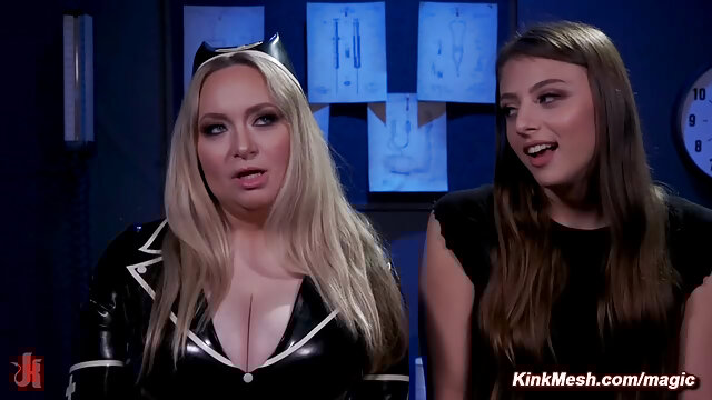 Huge natural tits blonde latex nurse MILF Aiden Starr applies clothespins to pussy of lesbian student Gia Derza and anal fist her tight ass hole for an experiment