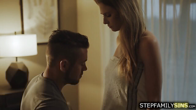 Ashley Lane is offering her stepbro in law something he cant refuse.The brunette babe drops her towel showing her naked body and letting him suck on her nipples.She goes on top of him giving blowjob while the guy is licking her shaved pussy