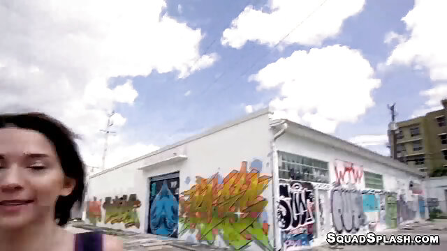 Brunette teen slut with nice medium natural tits Riley Jean sucking hard huge dick in public and she gets hardcore banging with cumshot and facial from huge hard dick in living room in pov