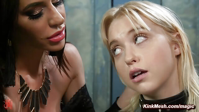 Busty brunette mistress Gia DiMarco otk spanks blonde slave in lingerie Chloe Cherry then whips and punishes her and new slave Ashlee Juliet and seats on their faces while they are bound