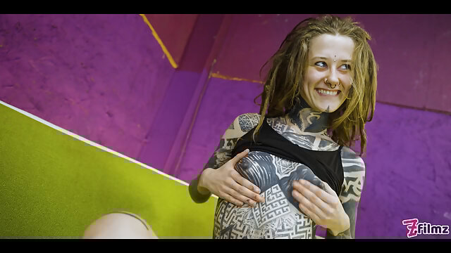 With her tiny, tattooed tits and pierced pussy Ceci Milkymouzz looks delicious. She takes off what clothing she has on and rubs mouth watering pussy!