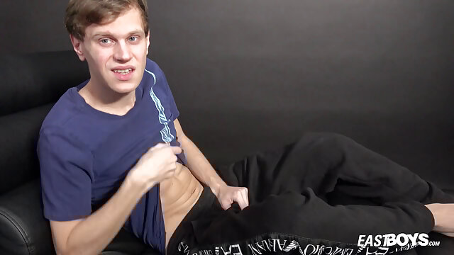 Solo straight handsome slim boy Jake Bode with hairy dick and legs jerks his dick on the sofa front webcam